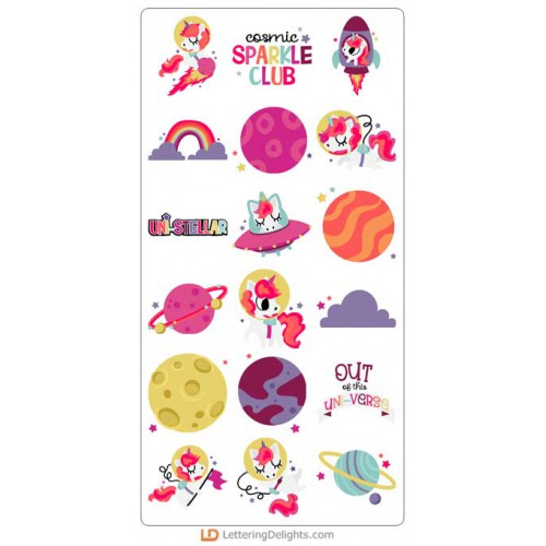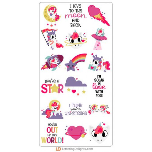 This magical graphic collection features adorable space unicorns and Valentine space unicorns that are perfect for cards, crafts, gifts, planner stickers, classrooms, scrap book pages, parties, Valentine's and more! Products included in this bundle: