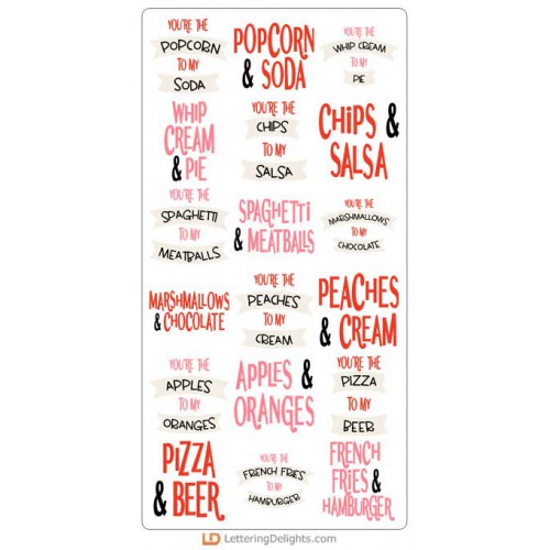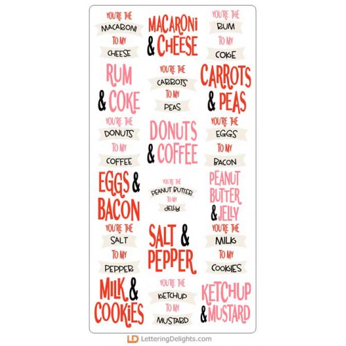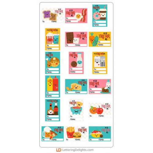 Create adorable Valentines, cards or crafts with our We Go Together Collection. This cute set contains all the perfect foodie pairs, their names, phrases, paper pack, printable Valentines and alphabet!