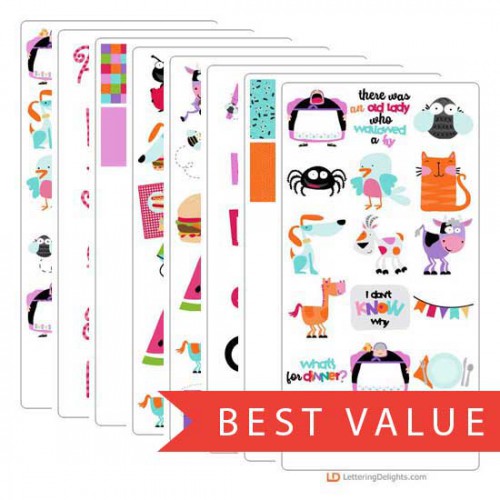 I know an old lady who swallowed a fly...old lady, fly, spider, bird, cat, dog, goat, cow and horse ..