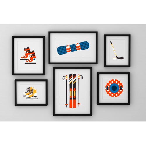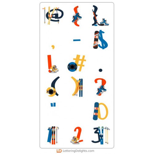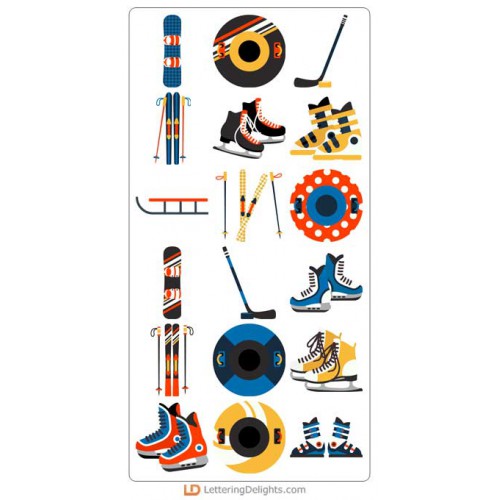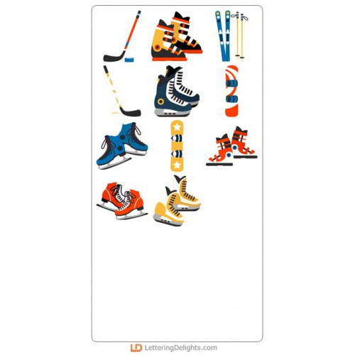 This fun graphic features different winter sports items, from skis, snow boards, tubes, sleds, skate..