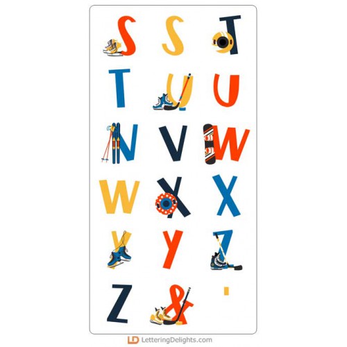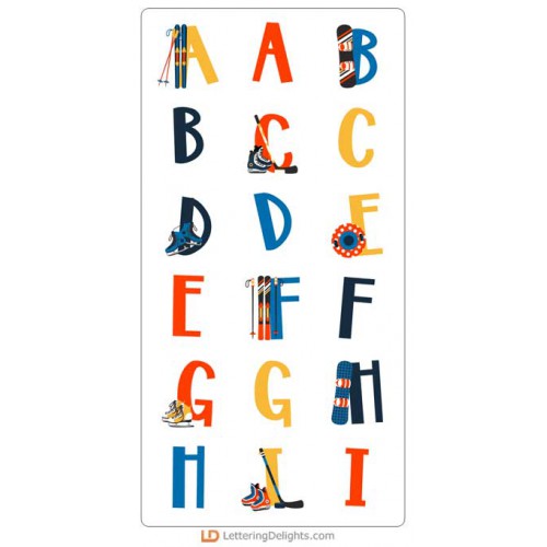 This fun alphabet features our snow sport items from our Winter Holiday Collection...