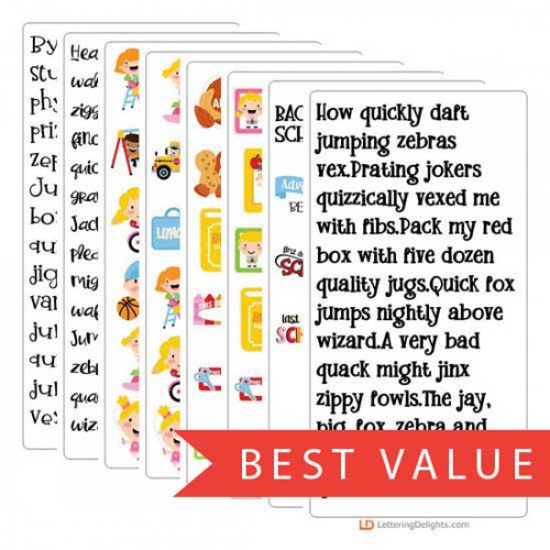 Adorable Zander is back and with friends this time as she heads to school! Our collection includes adorable school day imagery, fun quotes and phrases, as well as the perfect labels for all your daycare and school labeling needs. This collection is perfect for card making, scrapbooking, classrooms, and more! Products included in this bundle:
