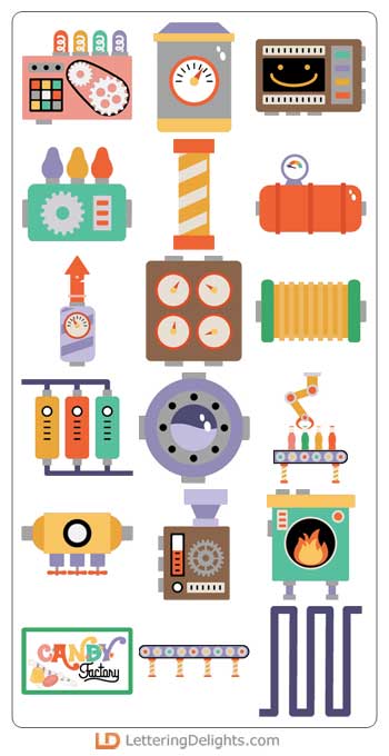 Create your own factory with this fun cuttable graphic perfect for cards, crafts, gifts, planner stickers, parties, scrap book pages and more!
