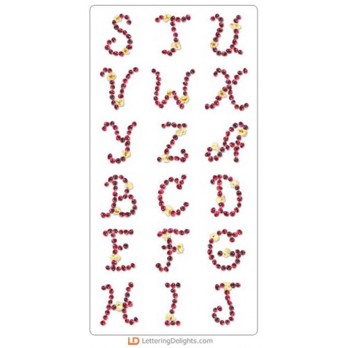 Beautiful pen strokes appear to be used to create these letters. Each is highlighted by a pretty red..