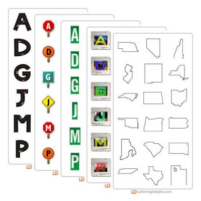 The LD Road Trip Bundle includes the following alphabets: Highway, Main Street, Road Trip, Signaled and Slide Show. It also includes the following TrueType fonts: Scrap Map, Scrap States, LD City Scape, LD Interstate and LD RV Products included in this bundle: