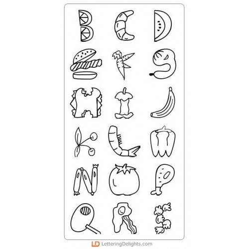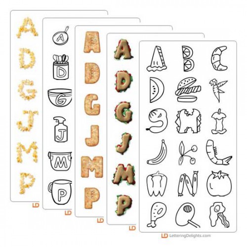 Each letter made with some member of a food group. Good for related flyers, announcements, etc...