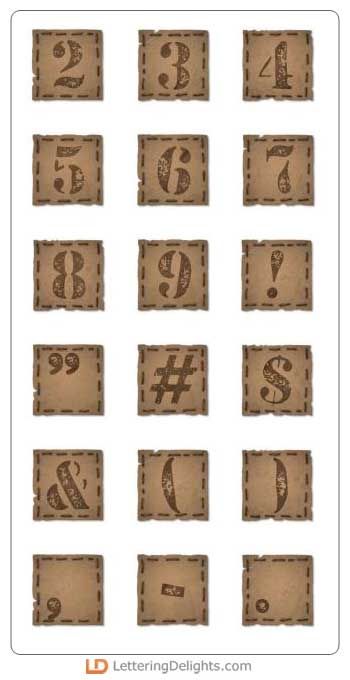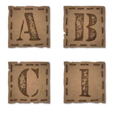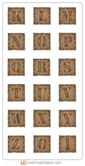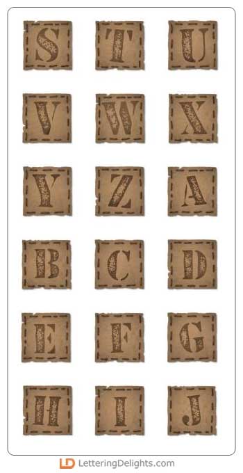 This alphabet looks like something made by your great Aunt Millie! The letters are placed in the middle of an old looking piece of leather. It even has stitches around the outside. It's great for that heritage look.