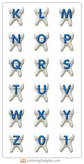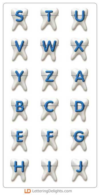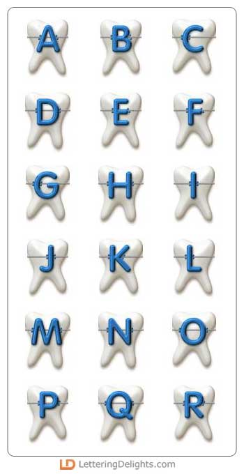 It's time for a visit to the orthodontist! This full color alphabet shows teeth and braces, with some letters in the middle. They are linked together just like real braces.