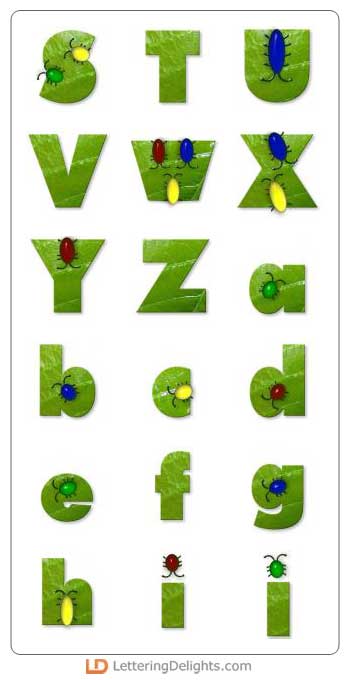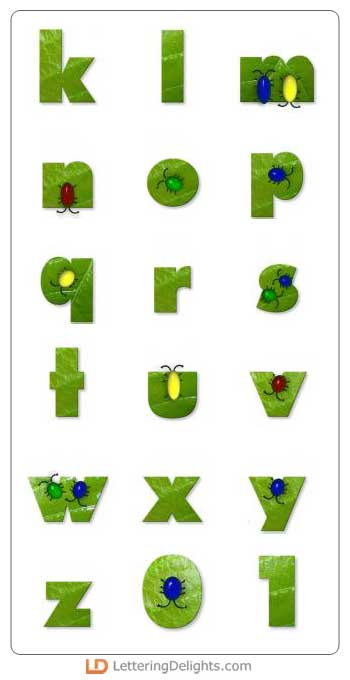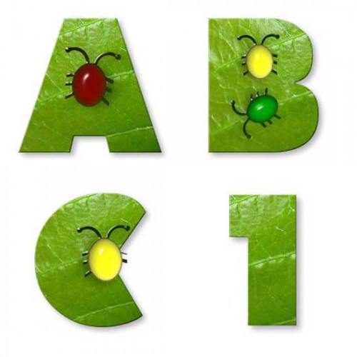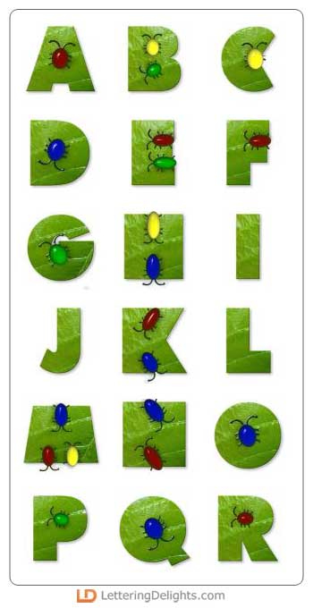 The leaves of this alphabet are realistic (they appear as if they just fell off a tree). Cute little bugs are crawling on the leaves. The bugs help distinguish between the different letters. This would make a great insect collection title.