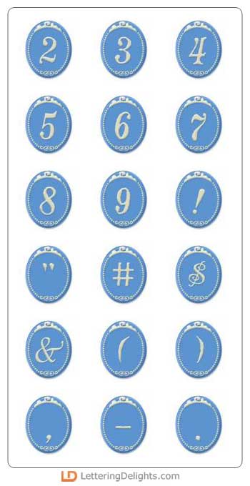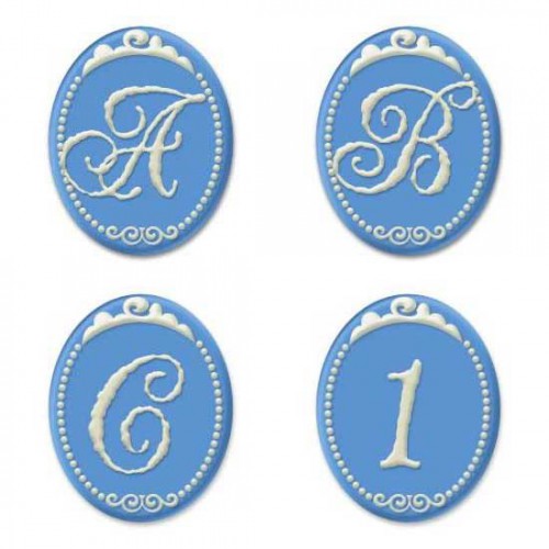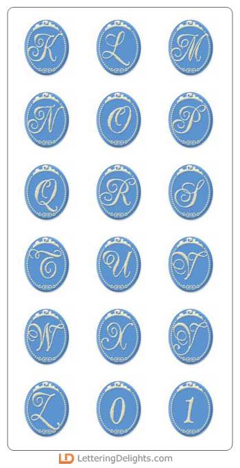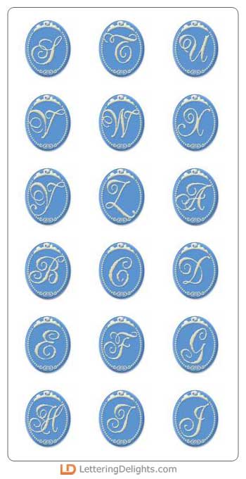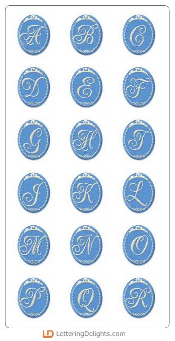This heritage style alphabet has a classic style letter placed inside an oval. It looks like a cameo pendant.
