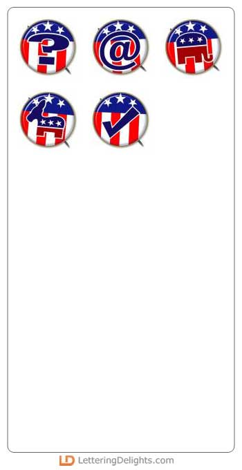 Celebrate our country's freedom to vote with this great campaign pins alphabet. It's a great way to commemorate any election!