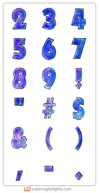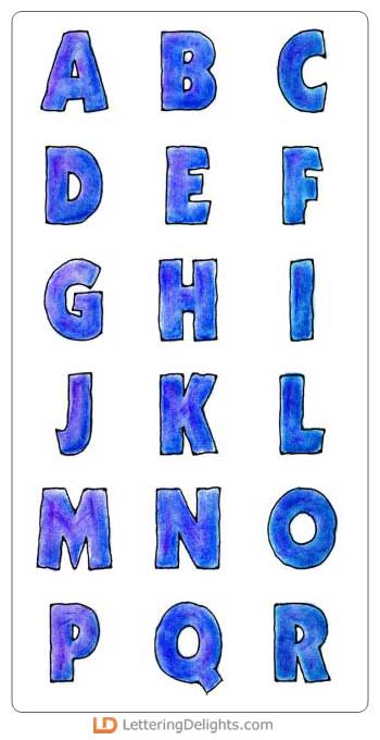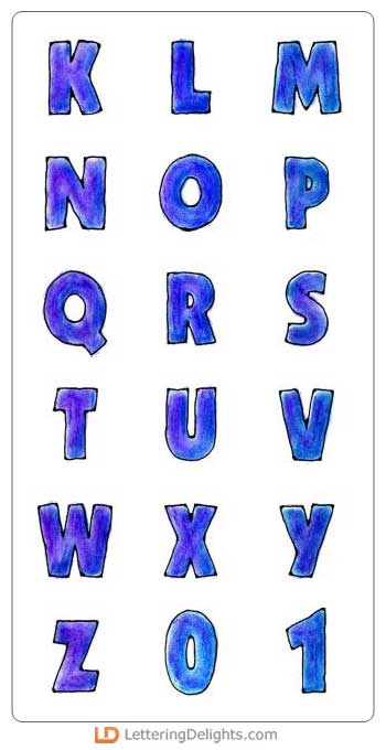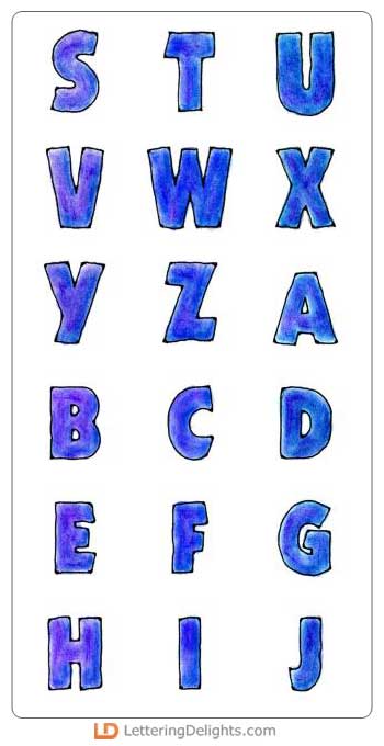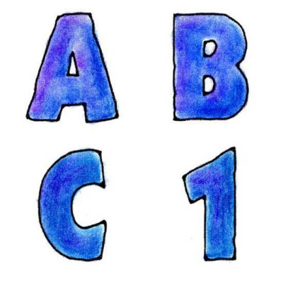 This fun alphabet appears to have been colored in blue chalk. It is a thicker alphabet that is perfect for that scrapbook page of your kids coloring the sidewalk.