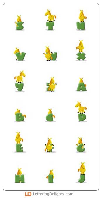 These fun loving dragons are playing with each letter of the alphabet. The letters are chunky & thic..