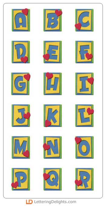This romantic alphabet has a pastel color box with a cute heart on it. it's perfect for your darling!