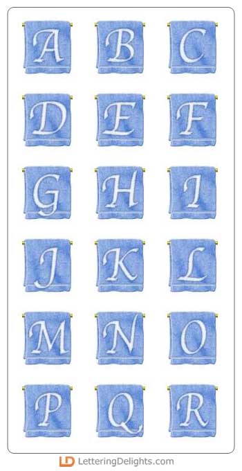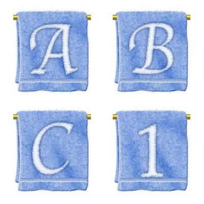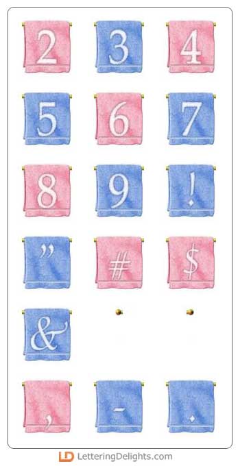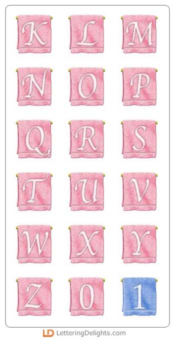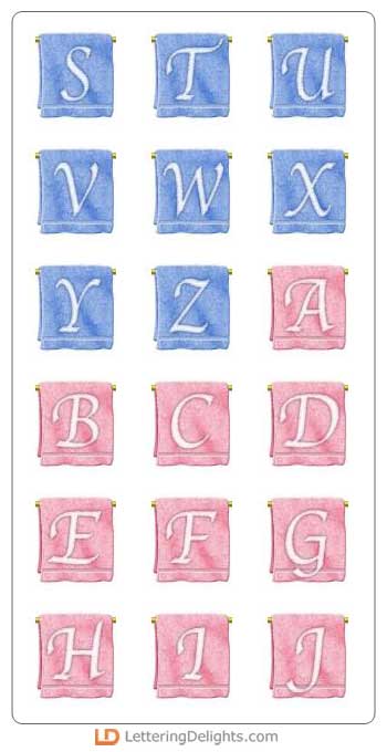 Realistic pink and blue towels, including a gold towel rack, make up this alphabet.