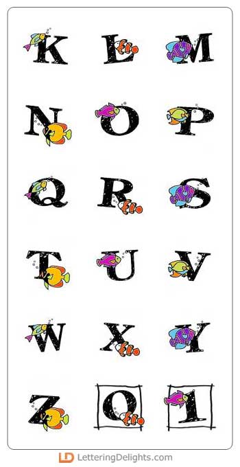 Beautiful tropical fish swim around the letters of this alphabet. It has a complimentary Journaling Delight set.
