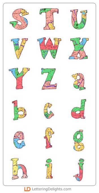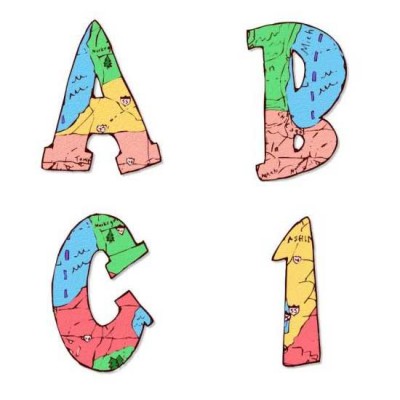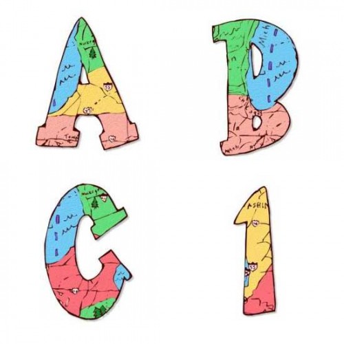 This Jillustration alphabet looks to be cut out from a map. It's complete with rivers, roads and signs.