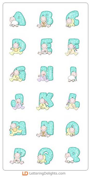 This alphabet features darling babies with light skin tones. Paired with the matching Journaling Delights set, they are great for making adorable baby scrapbooks.