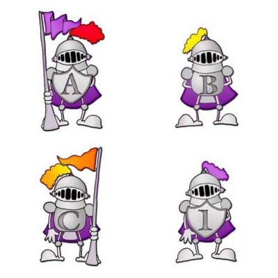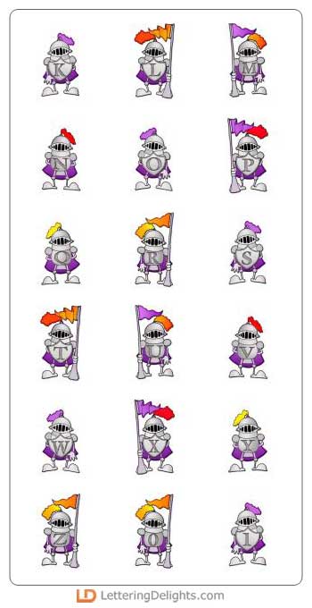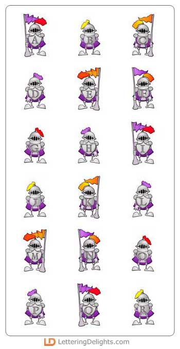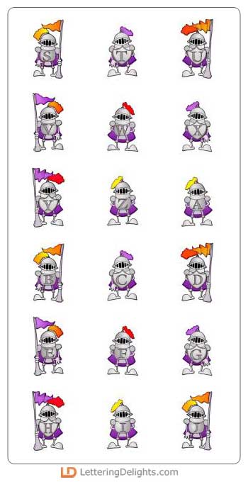 Darling knights in a suit of armor have the letters in their mid section. This has a fun matching Journaling Delight set.