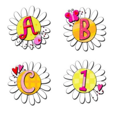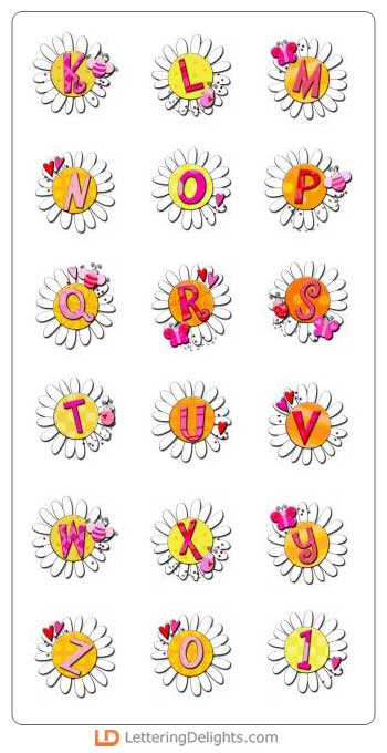 He loves me, he loves me not ... This fun alphabet has hearts & cute butterflies, but he main focus is the large white daisy. This reminds you of pulling off the petals and repeating "he loves me, he loves me not ..."