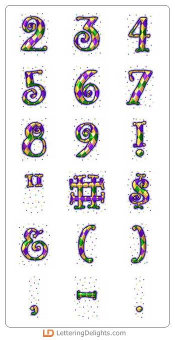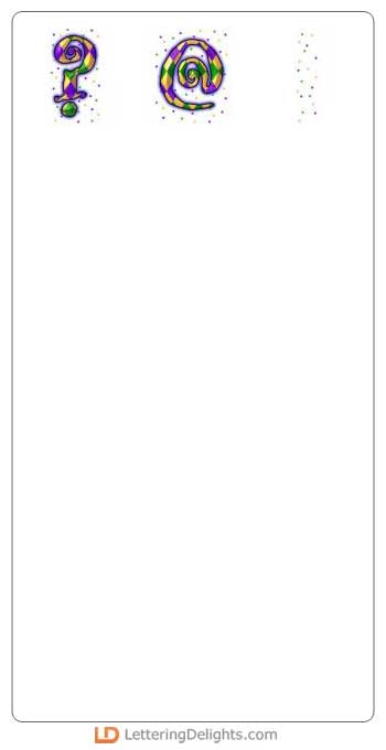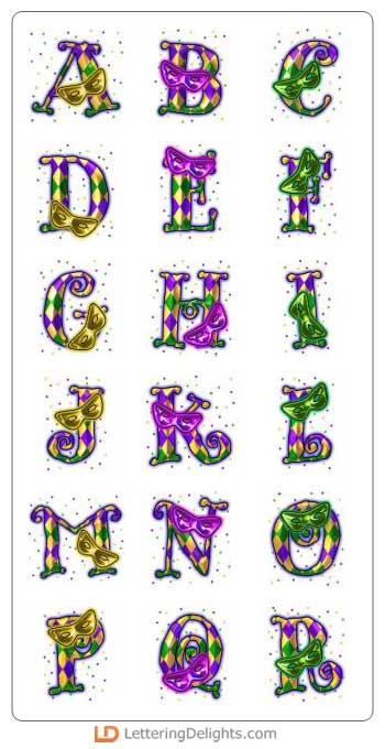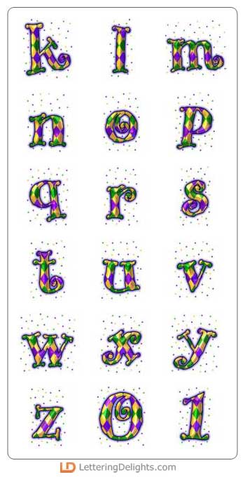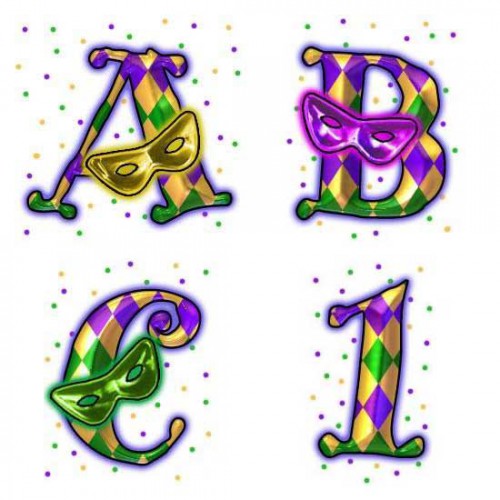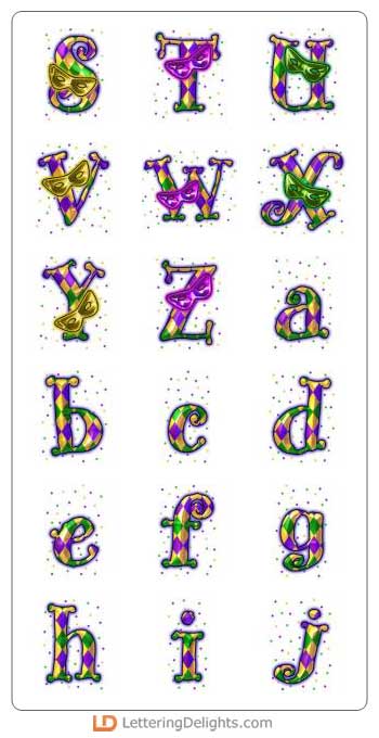 Let the party get started! This wild and crazy alphabet has those outlandish Mardi Gras style colors.