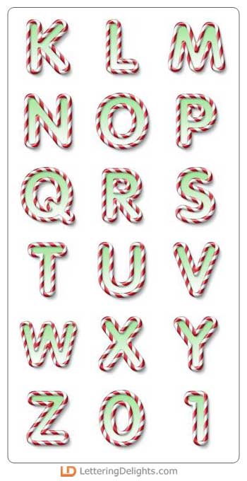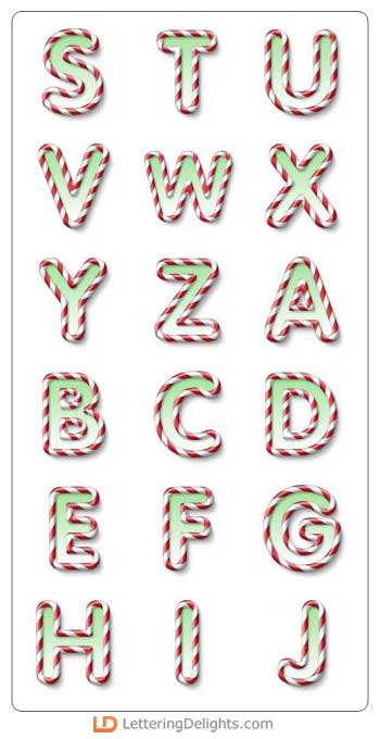 This yummy alphabet has peppermint stripes along the border of each letter. It's festive and bright.