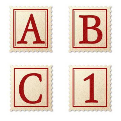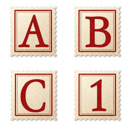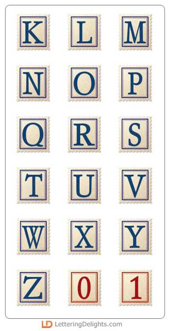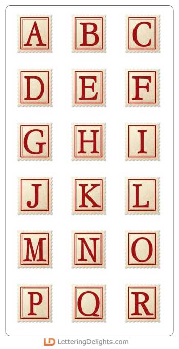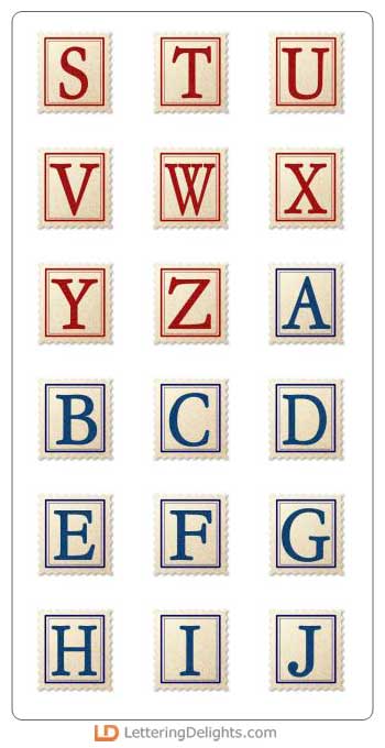 This alphabet looks so real you think you could lick the back of each letter and the post office would accept it. The letters are on a realistic postage stamp.