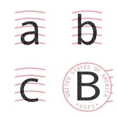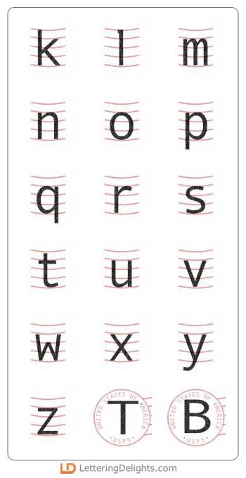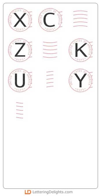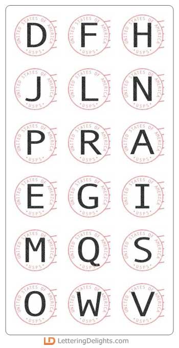 This alphabet looks like it was stamped by the post office. It has the circle seal at the beginning.