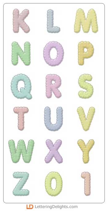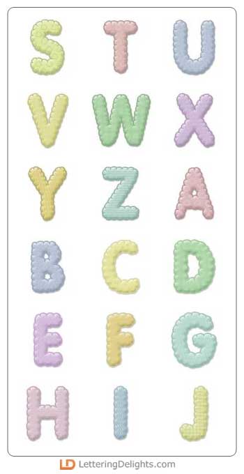 This cute alphabet looks as if grandma just pulled it off her quilting frames. This would be a great addition to a crafty layout.