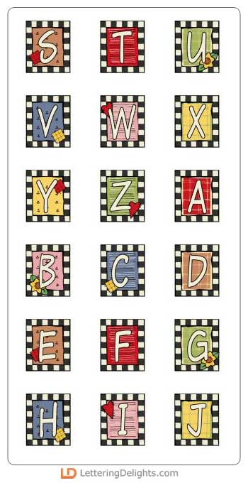 The letters of this alphabet are placed inside a patterned box. It is just "so sweet!"
