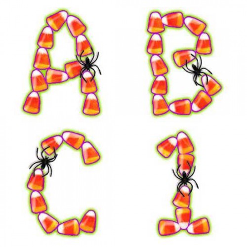 What's more Halloween than candy corn and spiders? This fun alphabet is made up of both.