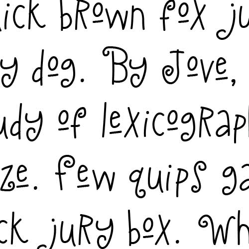 Up, down, and all around, this font looks as silly as it sounds. Randomly sized letters and arbitrary accents make this cute font a great choice for an informal occasion.