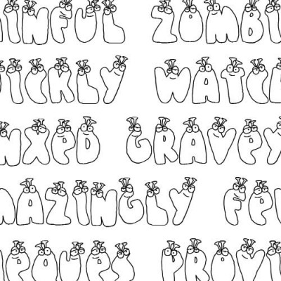 The slugs that make up this adorable font are very cute. They each have buggy eyeballs and are staring up at you. They are cute!
