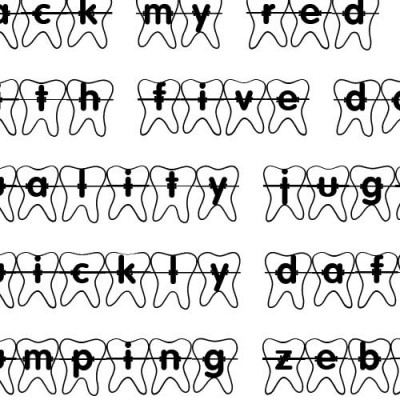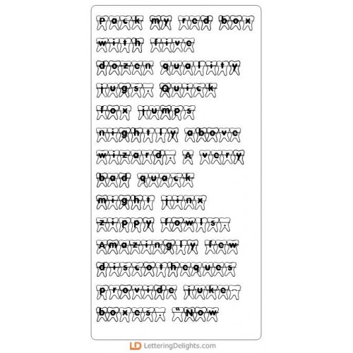 The letters of this font are inside a tooth and they are "linked" together by braces. Perfect for that orthodontist scrapbook layout.