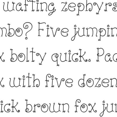 This is a fun "fruity" font. At the end of the lines that make up the letters of this font are cute little cherries. They are ready to pick!