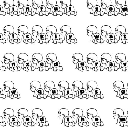 The letters of this font are printed on the back of the diaper of a cute crawling baby. Aren't children adorable!