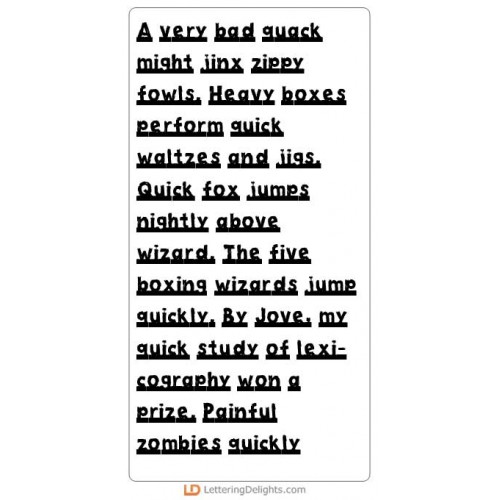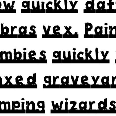 This font is very rustic looking. Each letter has that rough edge and it has a line at the bottom that connects the letters together. Perfect for that outdoorsy invitation or layout.