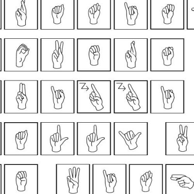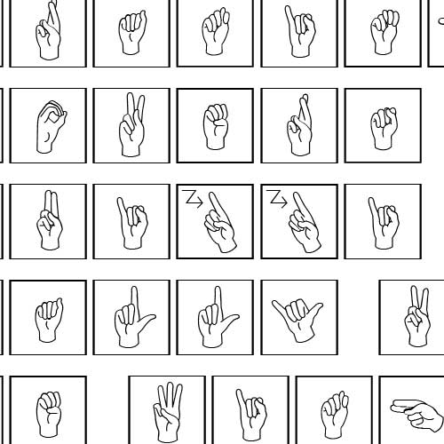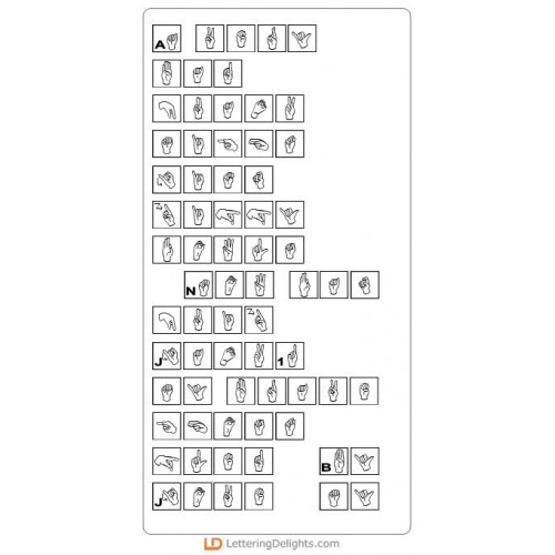 Capital letters and punctuation show the letters with the hand signs. Lowercase letters show the hand signs only.