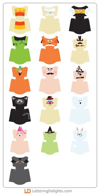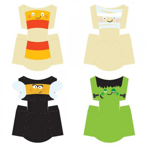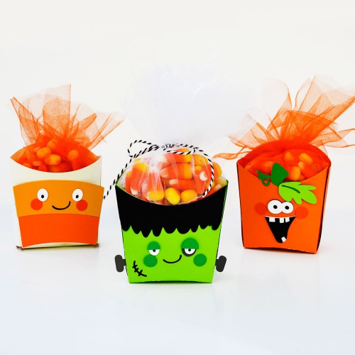 These adorable fry boxes are wearing costumes. Use them to make your treats look especially cute.