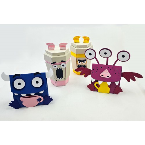 Create adorable monster coffee cup boxes and bags with this simple cut project set.