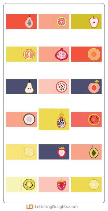 These delicious graphics feature graphic styled fruit cross-sections layered into beautiful cards.