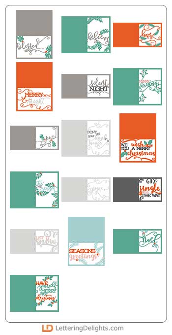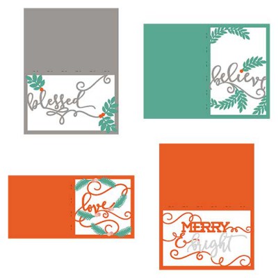 Contemporary scripts and fonts make up holiday greeting cards that are easy to cut on your cutting machine with very few layers.