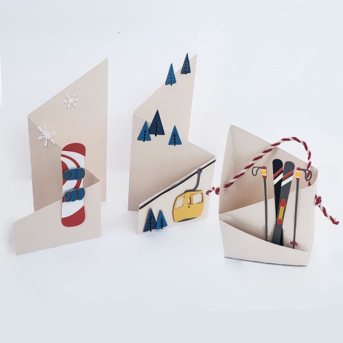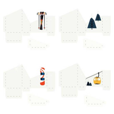 Create adorable snow tri-fold cards, and gift bags feature fun snow scenes. Perfect for parties and gifts.