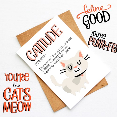 These puns go with our Catitude Collection purr-fectly! Use them to create fun cards, gifts, crafts, decor, planner stickers, scrap book pages and more!