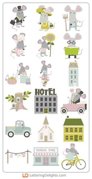 A fine tale of the city mouse versus the country mouse. Adorable graphics perfect for scrapbooking, decorating childrens rooms and more!
