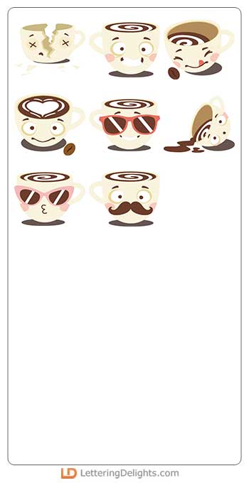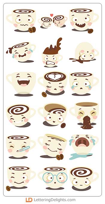 This fun collection features kawaii style espresso emojis, and kawaii style coffee shop bakery items..