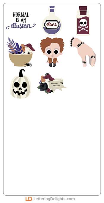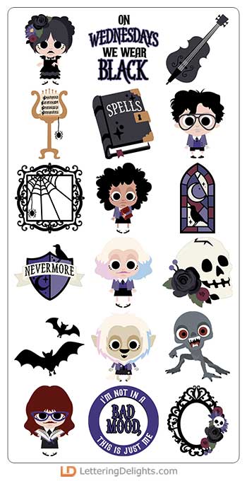 This fun bundle features images of classic spooky characters perfect for cards,crafts,gifts, planner..