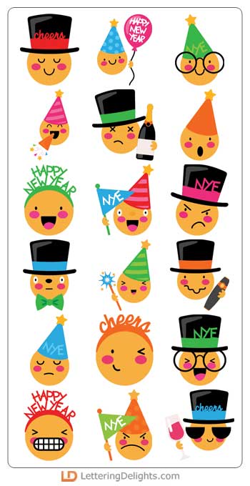 This fun colleciton features adorable holiday themed emojis from Christmas and New Years, perfect fo..