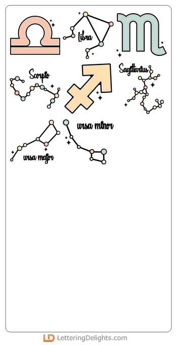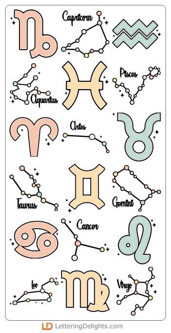 This adorable cosmic bundle features kawaii style zodiac images and words, journaling elements, cons..