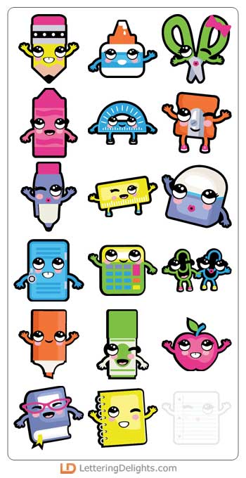We've emulated the Korean Pop culture phenomenon with this adorable school themed cuttable graphic set. Full of K-Pop fun loving school supplies, this cuttable graphic set is perfect for back to school, teachers, crafts, classrooms, cards, gifts and more!